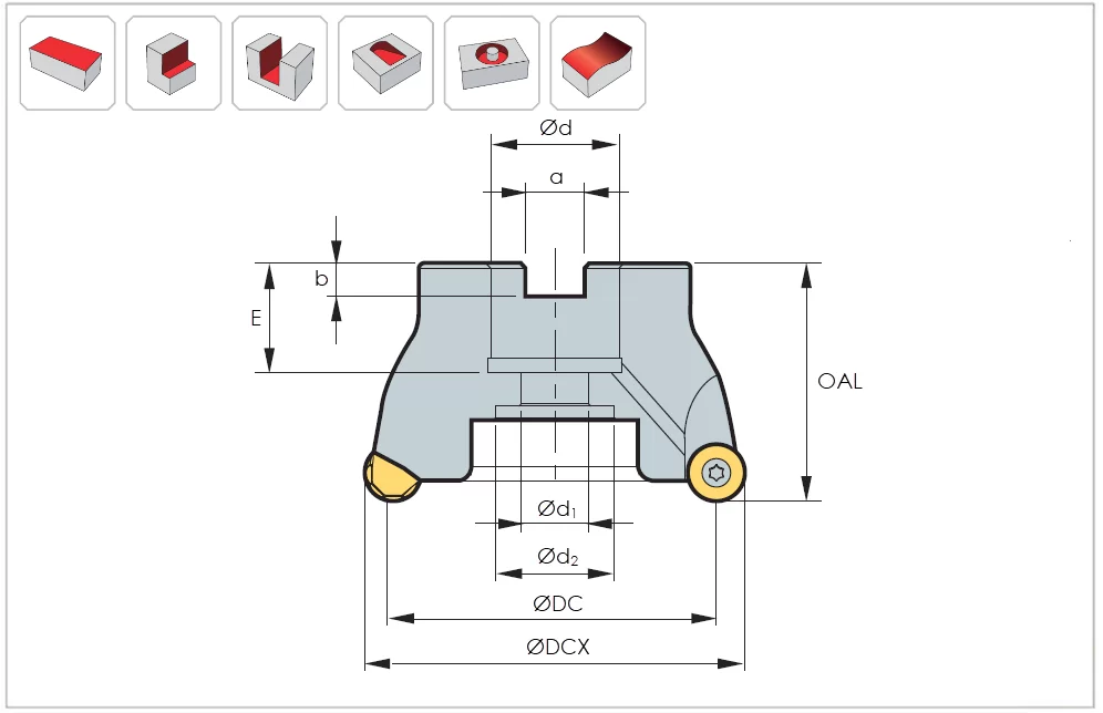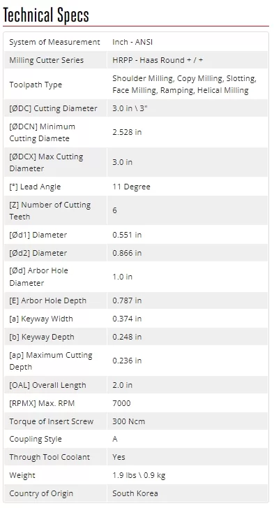 HRPP, 3 Diameter Shell Mill, 1 Pilot Bore x 11° Lead Angle, 6 Inserts (Circle), PositivePositive Geometry, TSC
