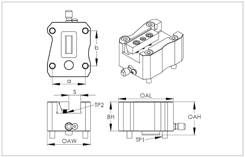 This bolt-on style (BOT) toolholder fits Haas ST-20, ST-30, and DS-30 Series lathes with 24-station BOT turrets.